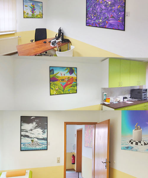 Heute habe ich meine neuen Werke (2019 bis 2020) aus meiner Ausstellung "Fantasy Worlds" Im Bürgerhaus Kaltennordheim in den Räumen der Arztpraxis Dr. med. Burkhard Strauß angebracht. Die Ausstellung wird vom 29.06.2021 bis zum 30.09.2021 zu sehen sein.